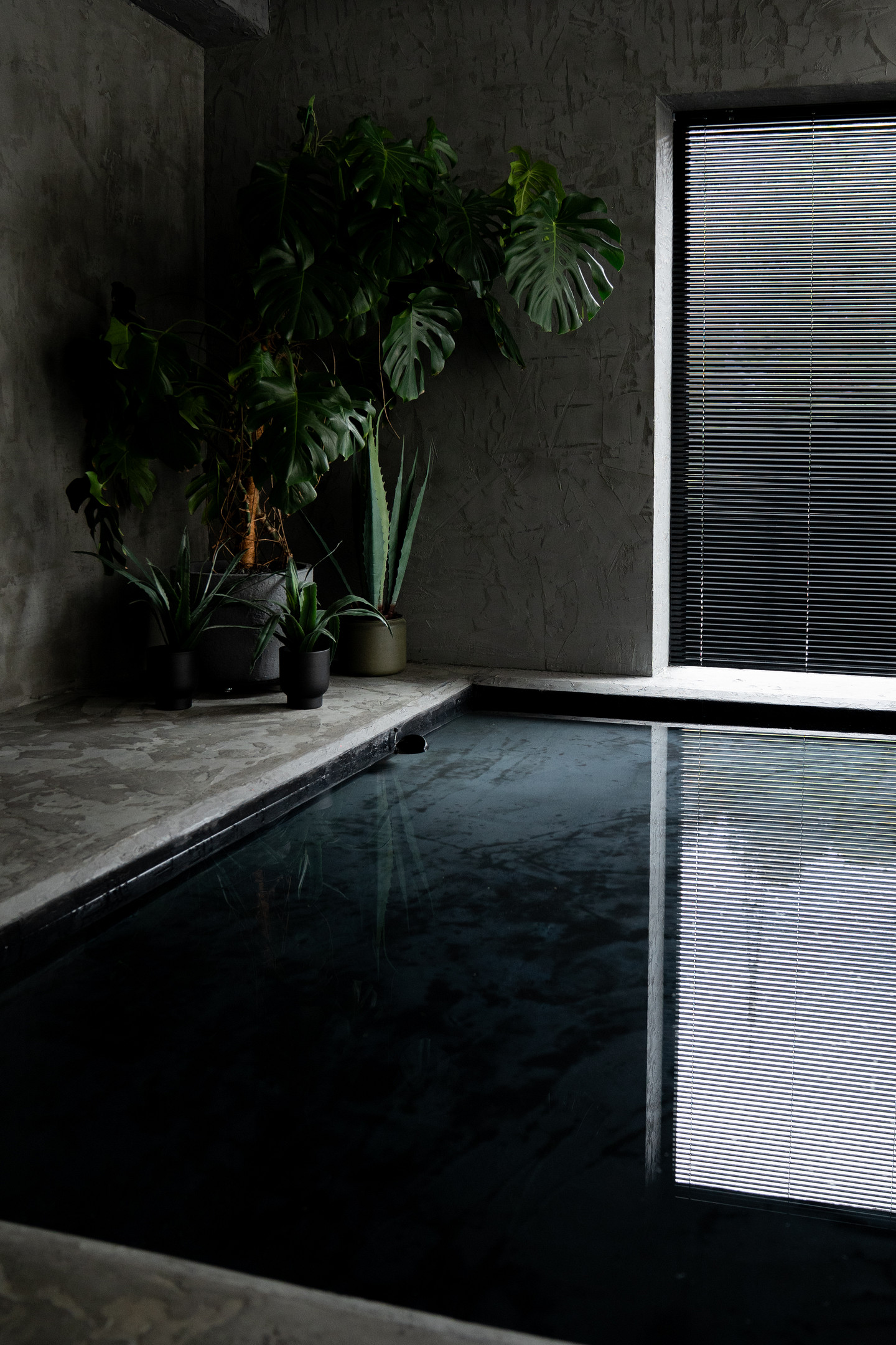 Тут поєднані темна зона з басейном, що занурює у настрій та тіні і біла зона зі шторами