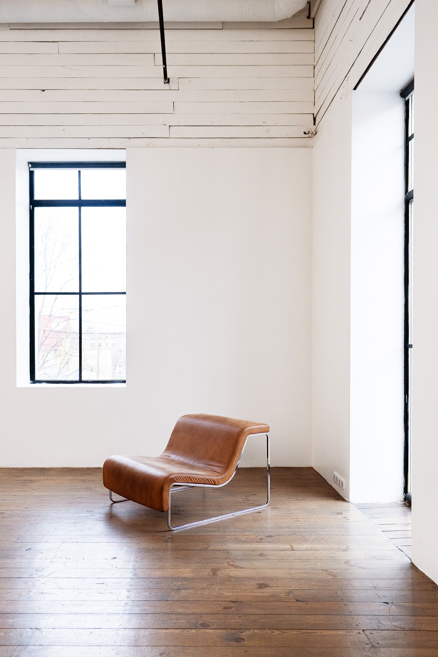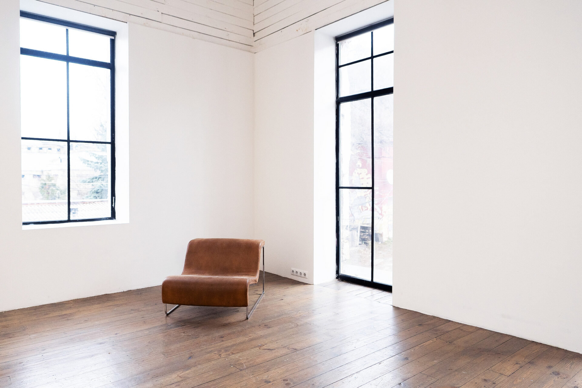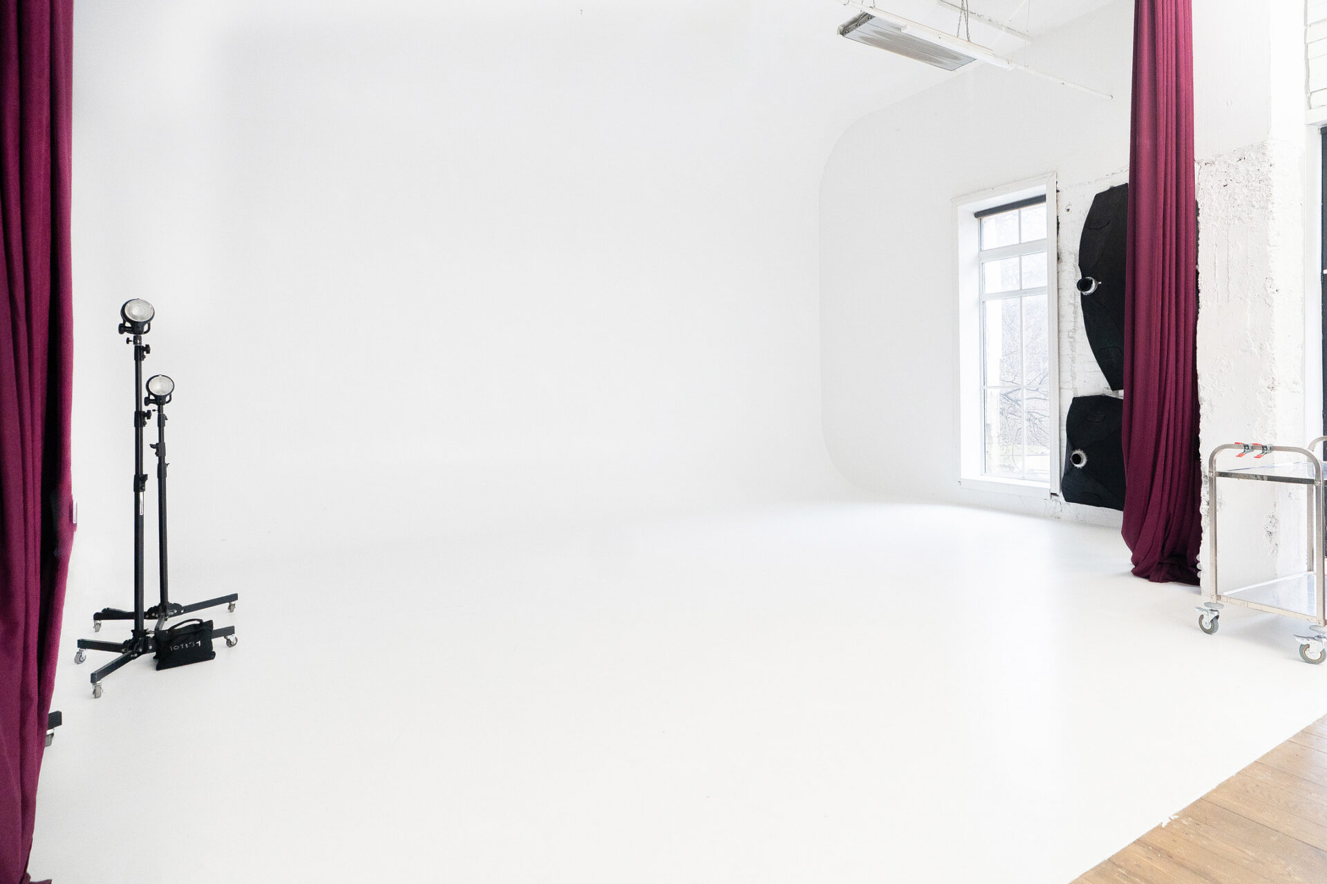 Поєднання естетики індустріального простору з теплом натуральних матеріалів. Великі вікна, фактура бетону і велика біла циклорама відкриває простір для будь-якої ідеї.